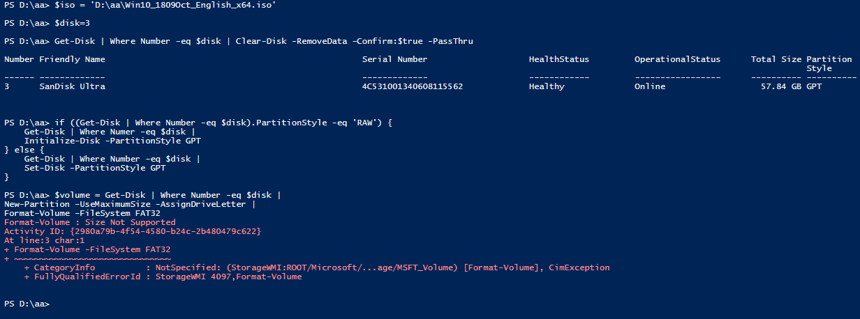 Get-Disk | Where Numer -eq $disk |
