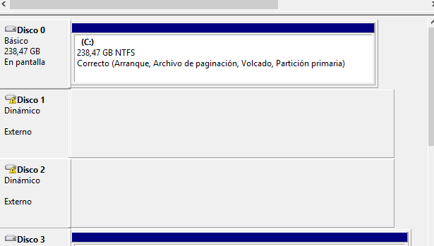 Al instalar Windows 10 me han desaparecido un raid 0 que contenía las maquinas virtuales. En el administrador de discos aparecen como Dinámico y externos