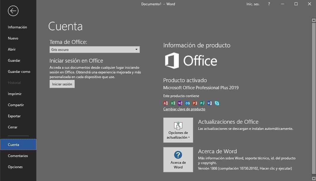 Ah, y el numero de versión es superior a la que se supone que es Office 2019