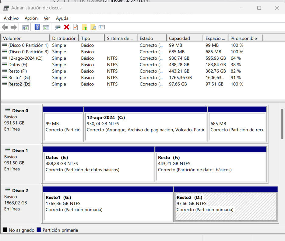 El administrador de discos dice lo siguiente