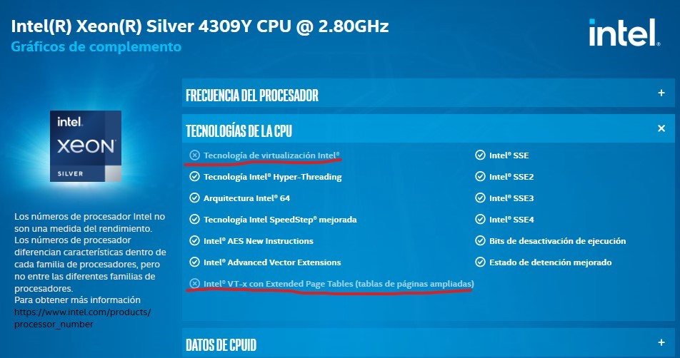 Alguien sabria decirme si esta informacion esta mal? o es que tengo algo desactivado? Me parece muy raro que fuese que no tuviese Intel VT-x o Virtualizacion Intel este procesador...