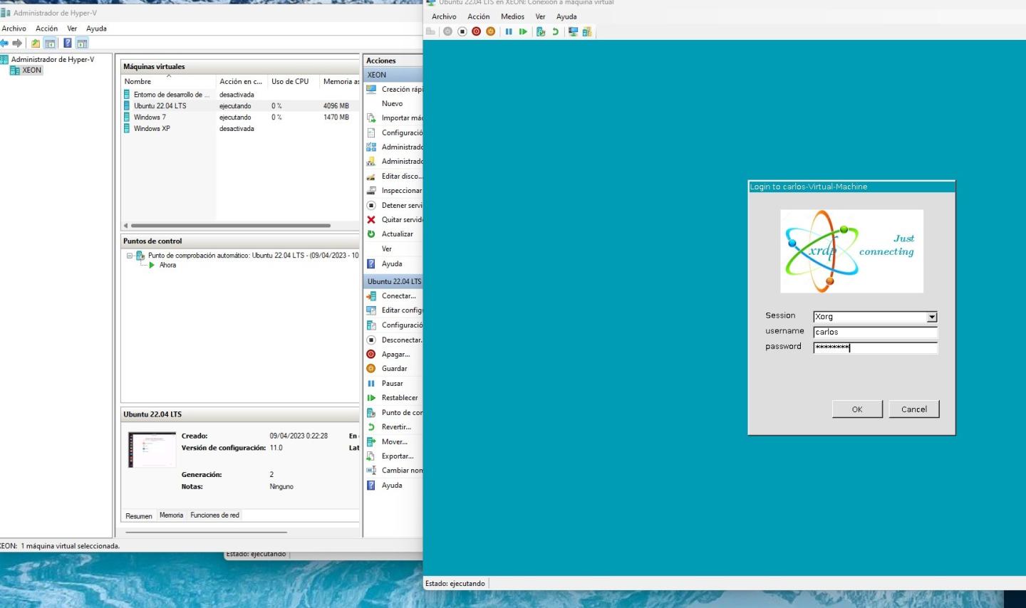 Luego instalar, y montar el XRDP en Linux. Apagar Linux, y al reiniciar ya te pedirá el escritorio enhanced.