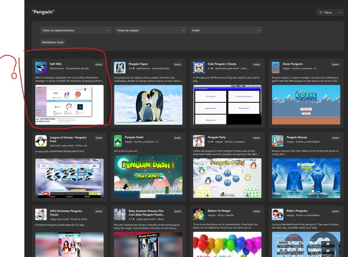 El Pengwin Enterprise 9 es el que sale en la tienda de MIcrosoft, es de pago... Y en el articulo que me pones sale el Raft WSL... Me voy al de pago?