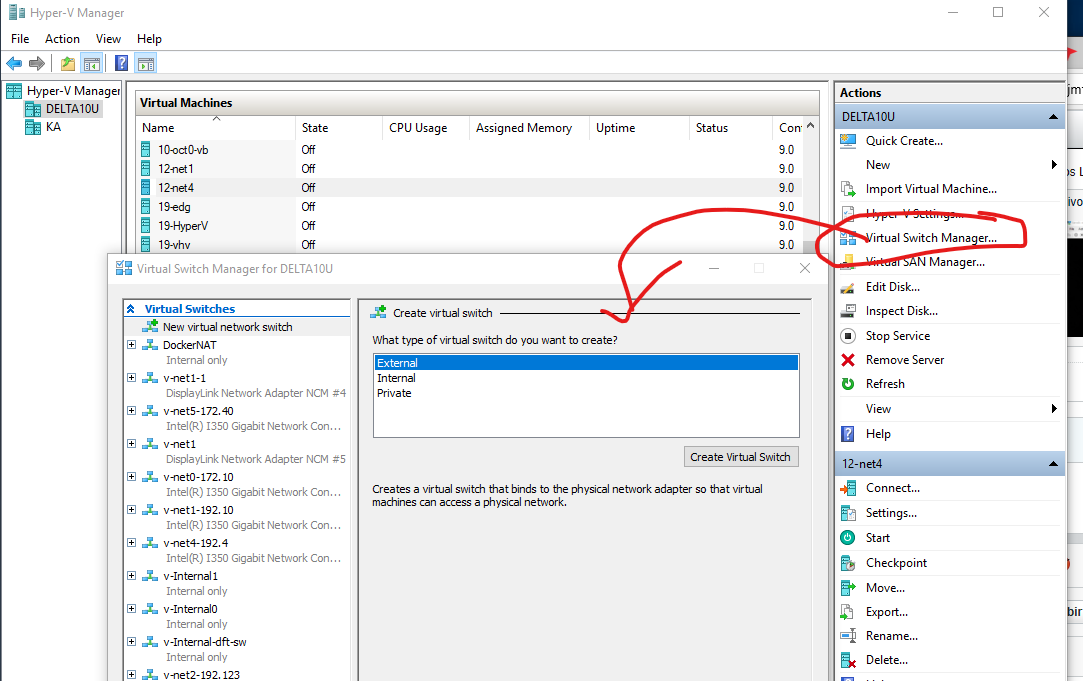 Por cierto, la red para un novato de Hyper-V le puede volver un poco loco... pero si es un w10 el anfitrión con el Default Switch que instala lo tienes ne nat con tu maquina. Pero se puede conectar uno en directo...