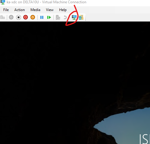 Si estas en el 10, cuando abres la virtual ¿te pide resolución de pantalla el propio gestor de Hyper-V?... debe hacerlo: se conecta a la virtual como si fuese un escritorio remoto. Pinchando en esto de la figura se camcia de "básico" es decir conexión de consola a conexión enhanced.