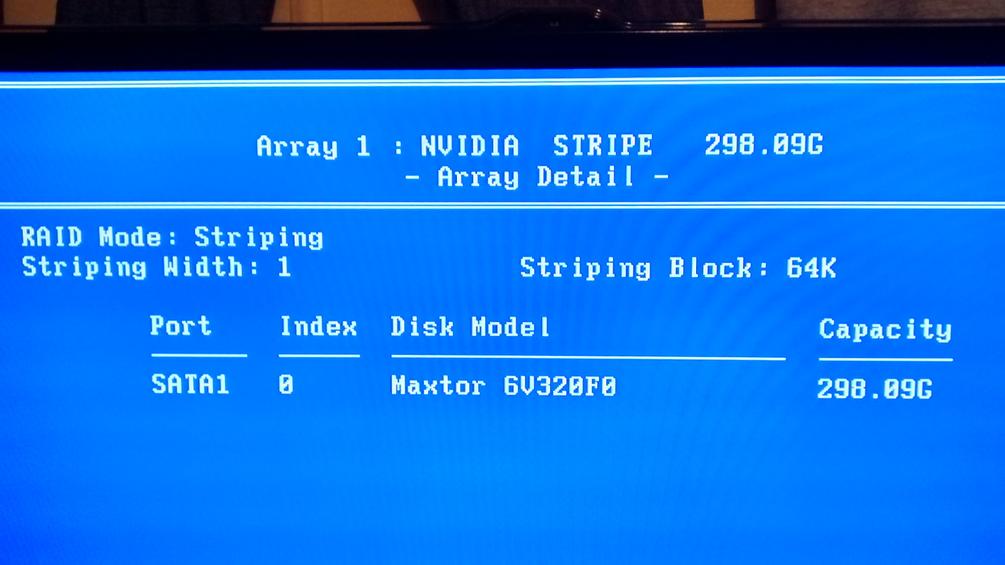 La instalación desde ceros fue en modo RAID... en administrador de dispositivos aparecía como NVIDIA Stripe 298.09G