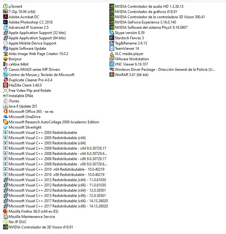 Ahora solo me da problemas lo del MKV pero no veo cual me ha podido meter el códec. Adjunto lista de cosas instalada: