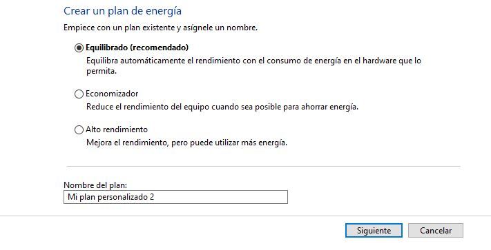 En opciones de energia solo sale el equiibrado en u W10 2004 en limpio .. al clickar "crear un plan" aparecen todas