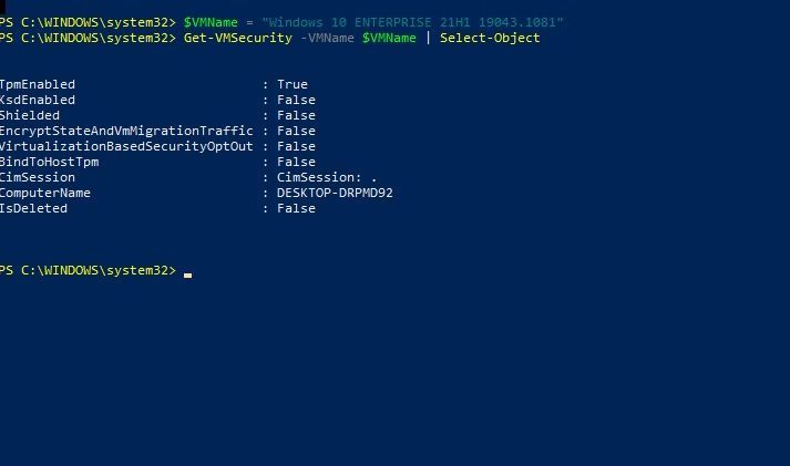 Enable-VMTPM -VMNAME "Windows 10 ENTERPRISE 21H1 19043.1081"