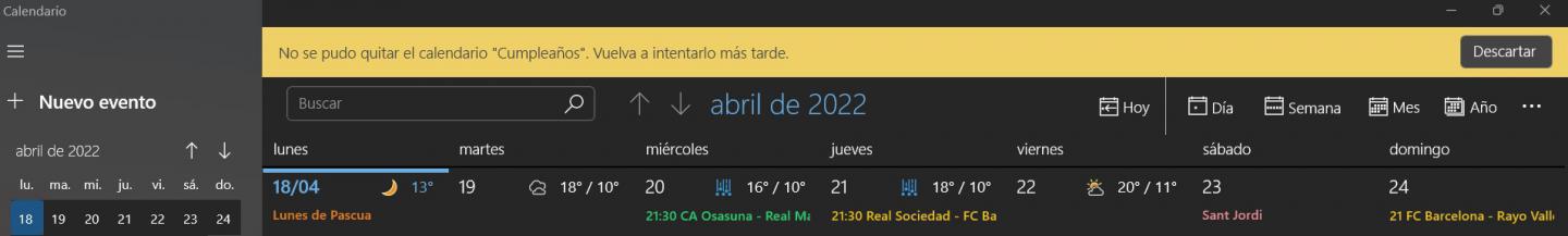 BIenvenidos al club...esto creo que pasa desde siempre.Originalmente publicado por Manolo Bernal Ver MensajeRepro. A mí tampoco me deja. Curiosamente, con otros calendarios, como el de días festivos, me deja quitarlo o añadirlo sin problemas. Pero con los cumpleaños me sale el mismo mensaje que a tí
