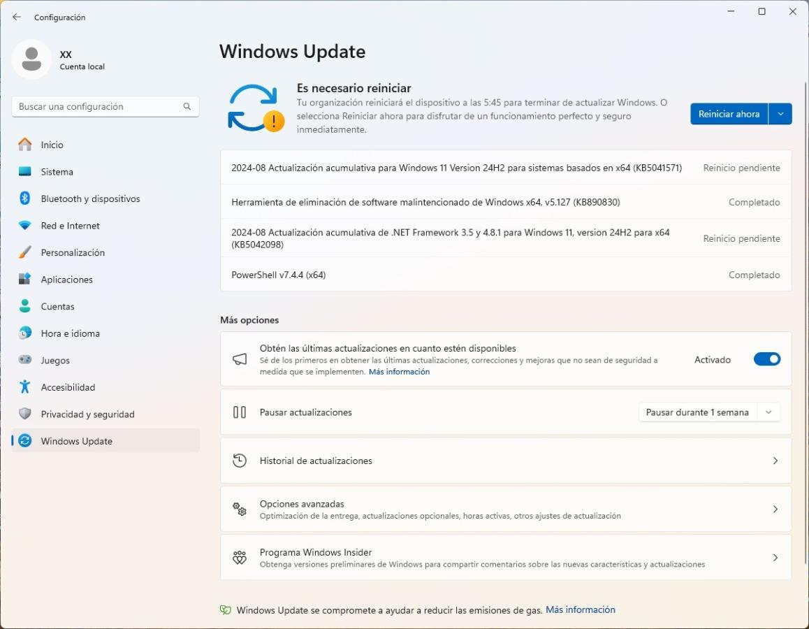 La cuestión es que no he experimentado ninguno de los conflictos que documentan Microsoft o las redes en 24H2. Todas las actualizaciones, incluso las determinadas como problemáticas, quedaron incorporadas automáticamente en su momento al sistema, sin novedad aparente.