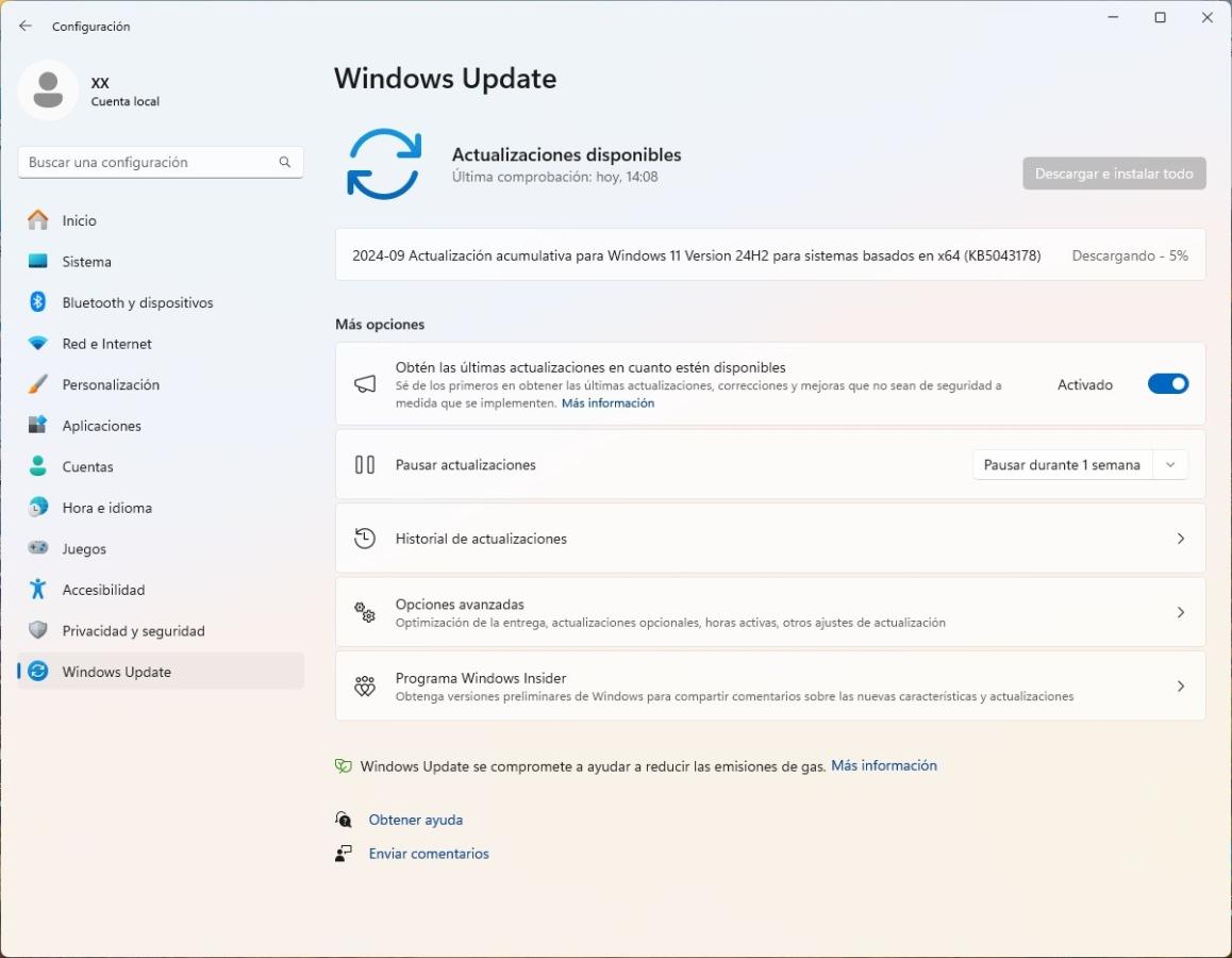 Ahora si descargas independientemente el KB5043178 Windows 11 24H2 [Descarga manual] 26100.1876 como actualización opcional de septiembre de 2024