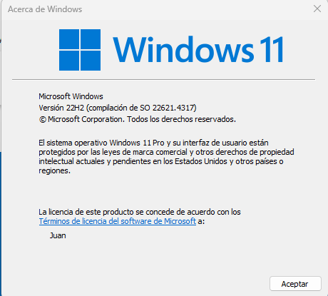Igual estoy tan desinformado que no podréis ayudarme, pero por probar.... Mi versión de w11 es la que podéis ver en el winver que adjunto. Se ha quedado estancada ahí o hay que hacer algo más para actualizar a la versión oficial. (Obviamente mi i7, 6700 no cumple ni las exigencias de w10 pero había una buena tool...)