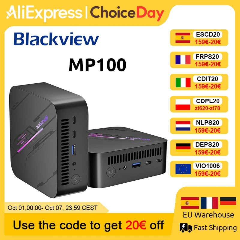 Se trata de este mini PC: Blackview-Mini PC con procesador AMD R7, ordenador con Windows 11, 8 núcleos, 16 hilos, 16GB, DDR4, 512GB/1TB, SSD, WiFi 6, 5700U/5825U, MP100, nuevo.